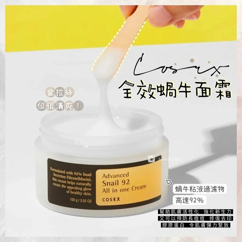 韓國Cosrx 92%蝸牛多效修護面霜100g