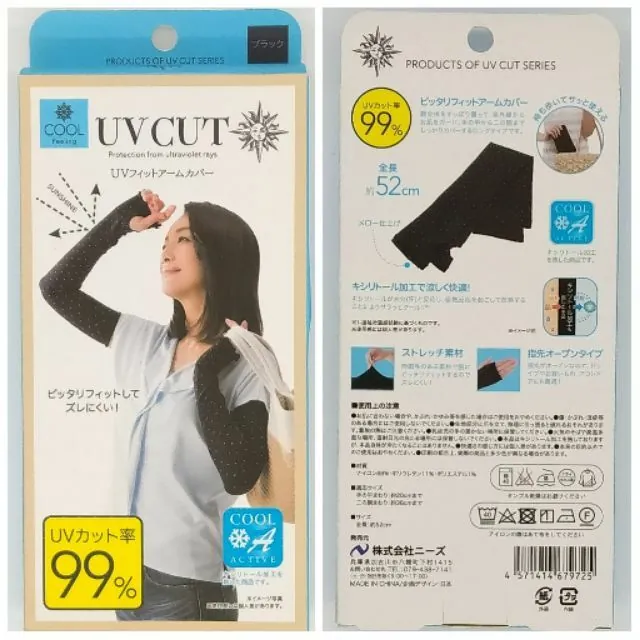 COOL UV CUT cool sun protection, heat shielding and anti-UV fingerless elastic sleeves - a must-have for driving and going out - dark blue